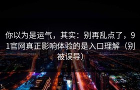 你以为是运气,其实:别再乱点了,91官网真正影响体验的是入口理解(别被误导)